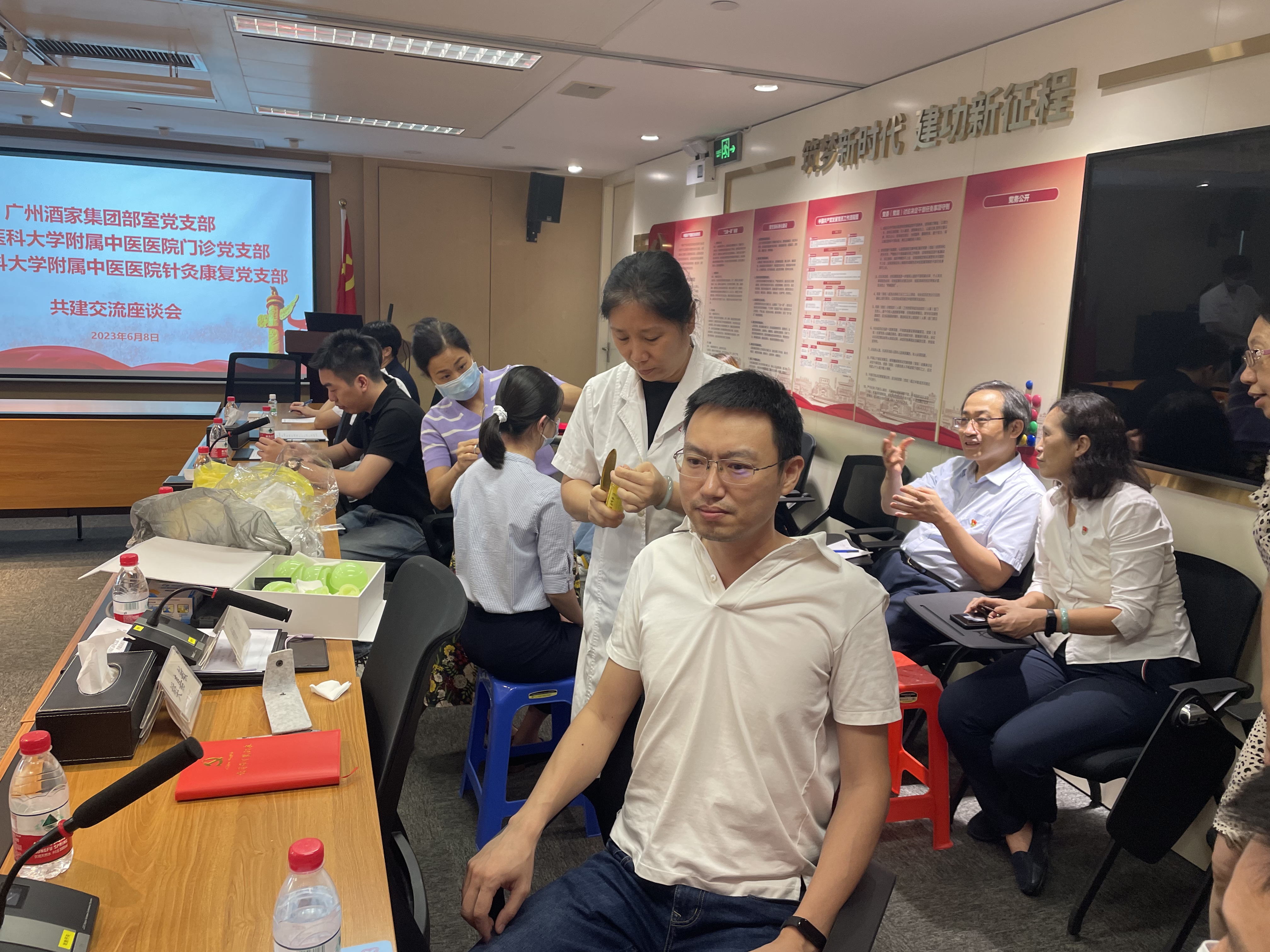 簽約儀式上,集團(tuán)部室黨支部書(shū)記楊青,廣州醫(yī)科大學(xué)附屬中醫(yī)醫(yī)院門(mén)診黨支部書(shū)記邱志文、針灸康復(fù)黨支部書(shū)記黃應(yīng)杰分別結(jié)合各自單位特點(diǎn)和資源優(yōu)勢(shì),圍繞黨建工作、組織建設(shè)等工作進(jìn)行交流和探討。雙方在理論學(xué)習(xí)、主題黨日、健康服務(wù)、養(yǎng)生產(chǎn)品研發(fā)等方面達(dá)成合作共建協(xié)議,并表示日后將加大交流力度,加強(qiáng)黨建共建合作,助推黨建與業(yè)務(wù)工作雙融合雙提升。