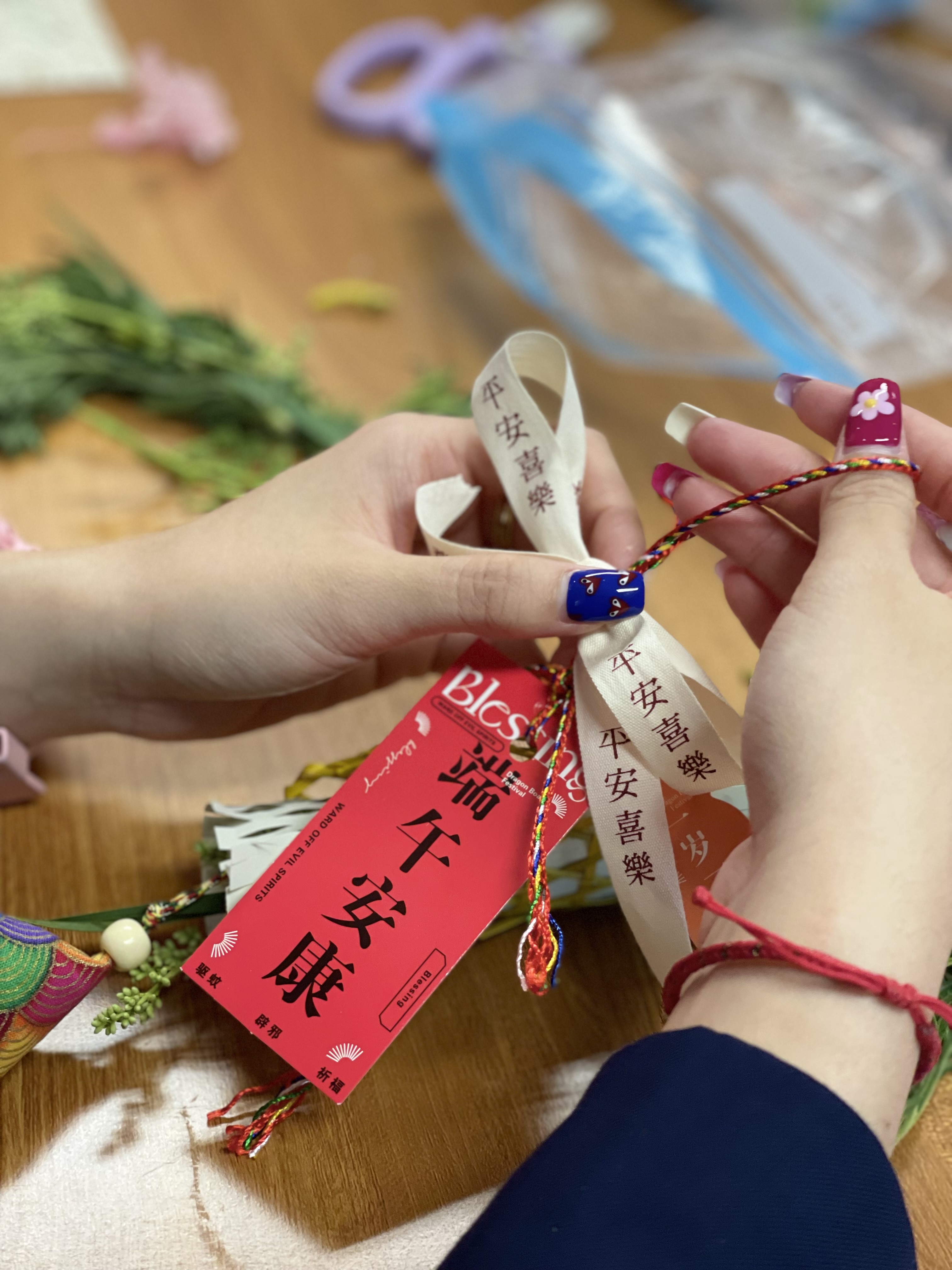 活動(dòng)現(xiàn)場(chǎng)香氣撲鼻,桌上整齊擺放著各種顏色的香囊和精心調(diào)配的中藥材,其主要成分有薄荷、佩蘭、艾葉、陳皮、菊花等10種中草藥,可以起到預(yù)防感冒,提高抵抗力,防蚊蟲叮咬,具芳香化術(shù),燥濕健脾功效。大家互幫互助,共同體驗(yàn)著制作香囊的樂趣,祈求健康平安。在歡聲笑語中,一個(gè)個(gè)飽滿精致、寓意吉祥的端午香囊呈現(xiàn)在大家的手中,聞著沁人心脾的中藥香,看著自己親手制作的香囊,每個(gè)人的臉上都洋溢著燦爛的笑容,成就滿滿。