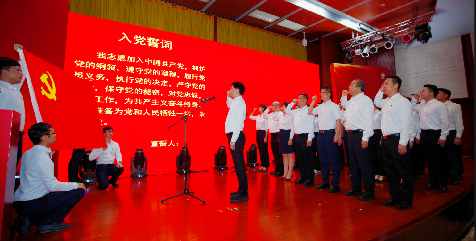 會上,新黨員入黨宣誓、黨員重溫入黨誓詞,由徐偉兵同志領誓,全體黨員面向中國共產黨黨旗莊重肅立,莊嚴宣誓,鏗鏘有力的宣誓聲響徹全場。