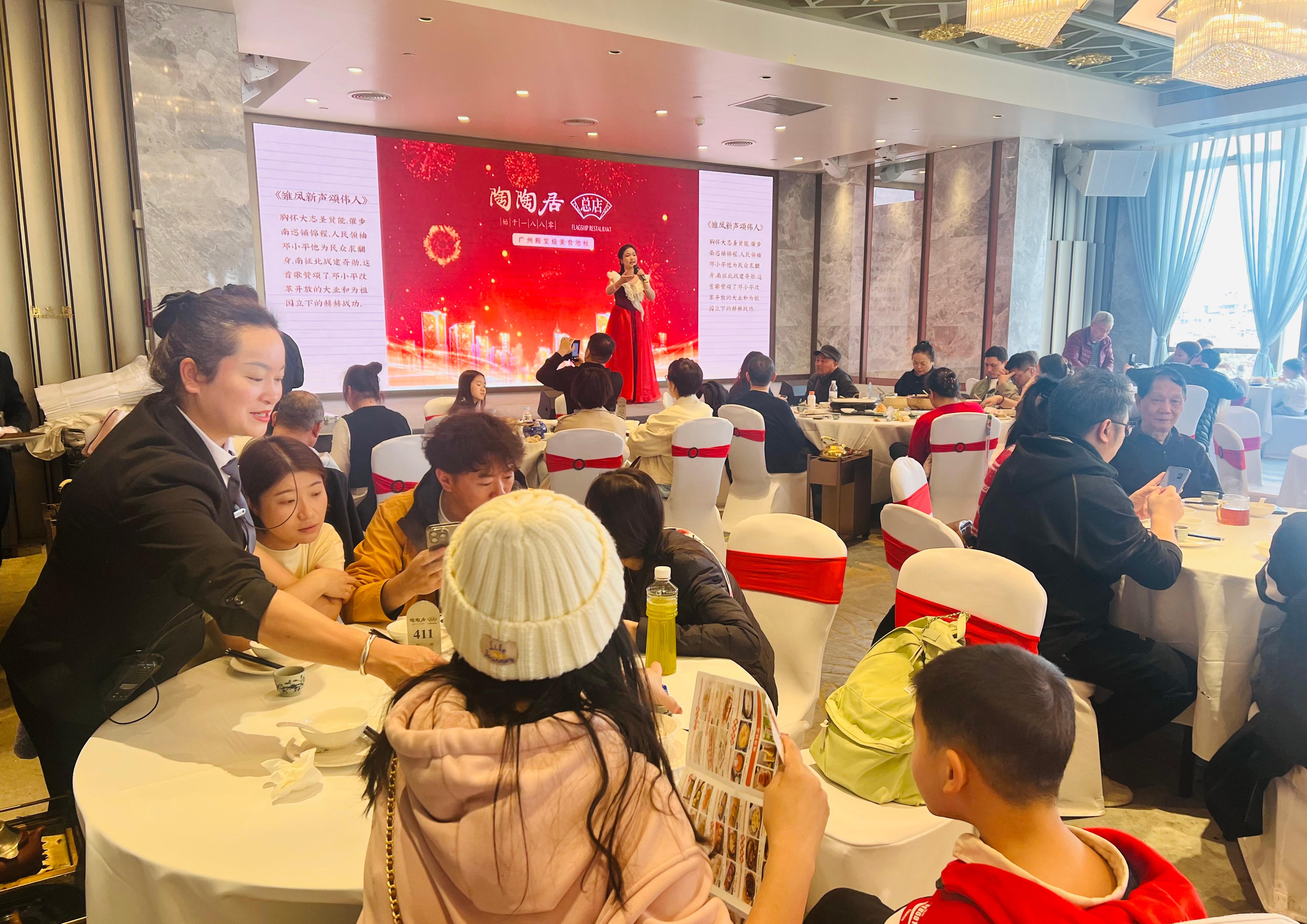 春節(jié)期間,舌尖上的美味成為節(jié)日焦點。廣州酒家、陶陶居等餐飲門店“春節(jié)檔”從早到晚客流不斷,餐飲消費熱氣騰騰,助推“年經(jīng)濟”活力滿滿。為增添新年喜慶氛圍,各餐飲店精心推出多款特色年夜飯宴席及新春團圓外帶套餐,上新“賀歲金沙醒獅”“五彩姜汁年糕”“金玉滿堂盆菜”等新春限定“意頭菜”,開展贈揮春送祝福、財神巡游送紅包及消費抽盲盒等特色迎春接福活動。陶陶居第十甫路總店更推出粵劇迎春連唱活動,現(xiàn)場演繹粵劇賀歲曲目,巧妙融合粵菜餐飲與傳統(tǒng)文化打造餐飲消費新場景。春節(jié)期間餐飲店年夜飯預(yù)訂量過千桌,客流量與營業(yè)收入均實現(xiàn)同比雙位數(shù)增長。