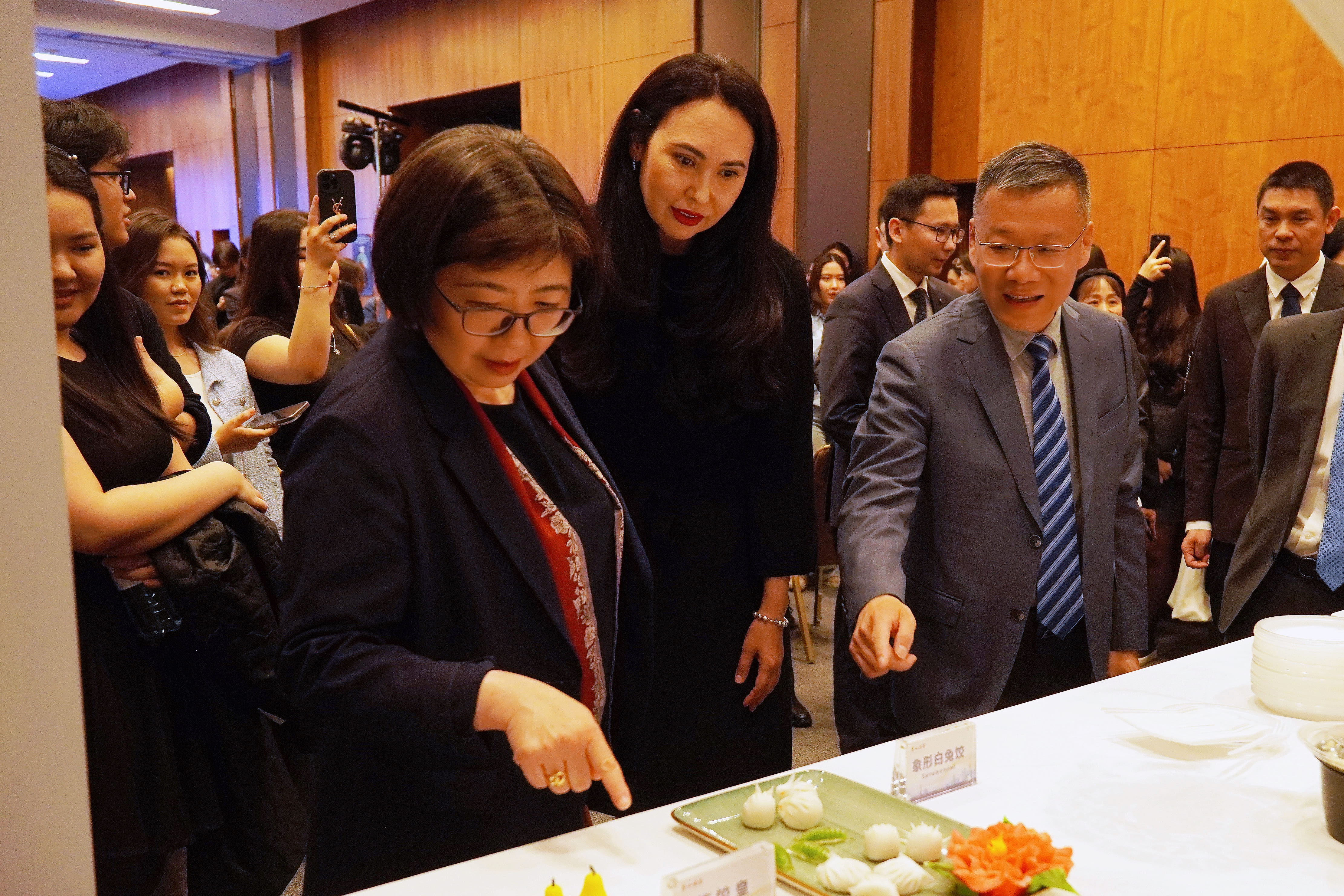 中國駐哈薩克斯坦大使館臨時代辦邢芳芳,哈薩克斯坦阿斯塔納市旅游發(fā)展局局長奧米魯扎克、中國研究中心主任沙伊梅爾格諾娃等現(xiàn)場參觀和品鑒廣式點心。邢芳芳表示:“美食文化是中哈兩國人文交流合作的重要組成部分,廣式點心以精湛的技藝詮釋了廣府美食‘食不厭精’的飲食哲學,每一道點心都凝聚著中華飲食文化的千年智慧,這對哈薩克斯坦人民讀懂中國、了解廣州具有重要意義”。