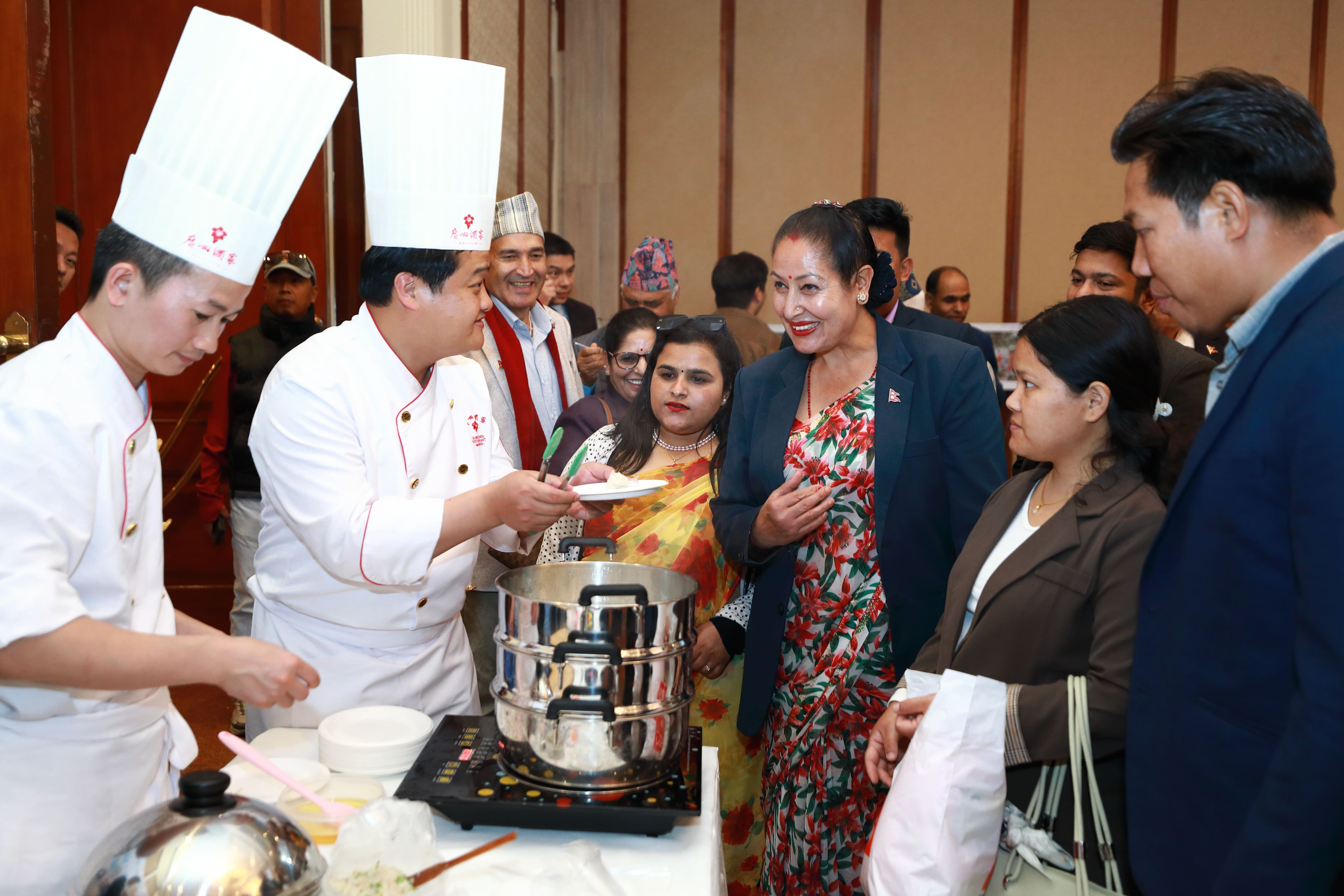 活動期間,趙利平向中國駐尼泊爾大使館參贊王欣,尼泊爾文化、旅游和民航部常秘比諾德·普拉卡什·辛格,尼泊爾中國研究中心執(zhí)行主席孫達爾·納特·巴特拉伊等領(lǐng)導(dǎo)嘉賓全面介紹廣州酒家的發(fā)展歷程和遠大愿景,并現(xiàn)場觀摩廣式點心制作技藝。王欣高度評價廣州酒家粵點大師的精湛技藝和傳承發(fā)展中華文化的突出成就,并期待通過進一步傳播推廣粵式飲食文化,促進中尼合作,共同開啟互利共贏、攜手發(fā)展的新征程。孫達爾·納特·巴特拉伊更是對蝦餃愛不釋手、贊不絕口。
